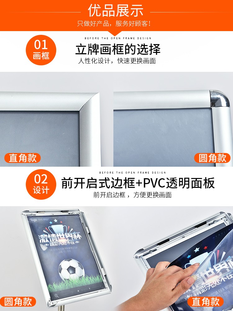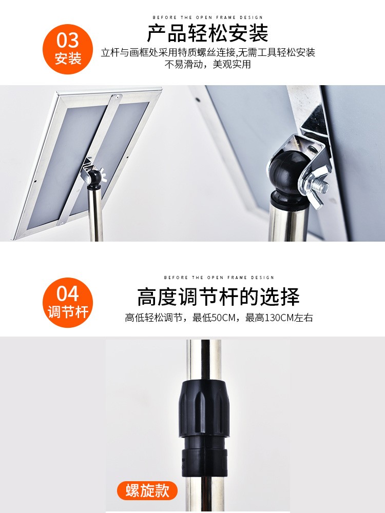 商品名称:易利丰(elifo)不锈钢可伸缩立牌展示牌水牌展示架立式广告牌指示牌引导牌支架子菜单展板 直角 a3银色 1套装