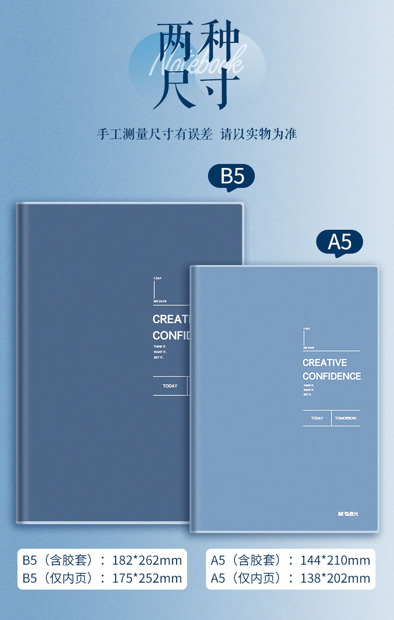 商品名称:晨光(M&G)文具B5/64张胶套本 记事本笔记本子 高颜值错题本 高中学生考研日记本 淡染系列4本装