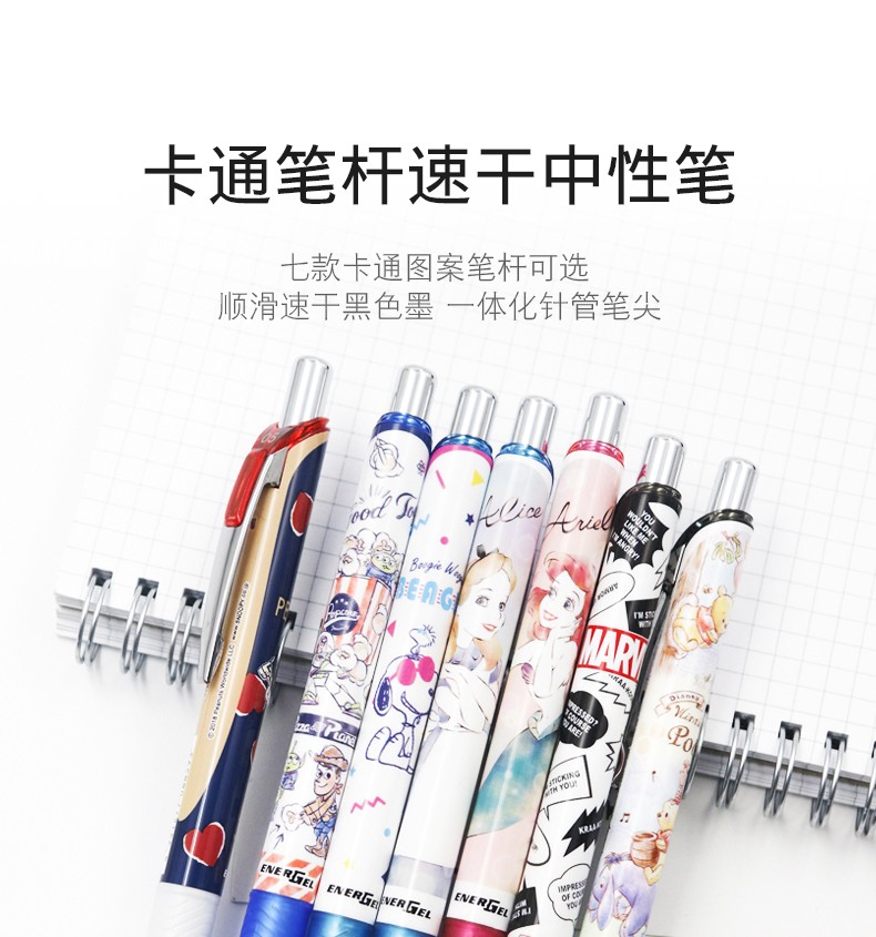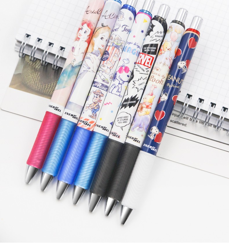 派通 日本Pentel顺滑速干中性笔BLN75系列卡通限定图案中性笔考试按动水笔0.5mm 淡彩黄杆-史努比