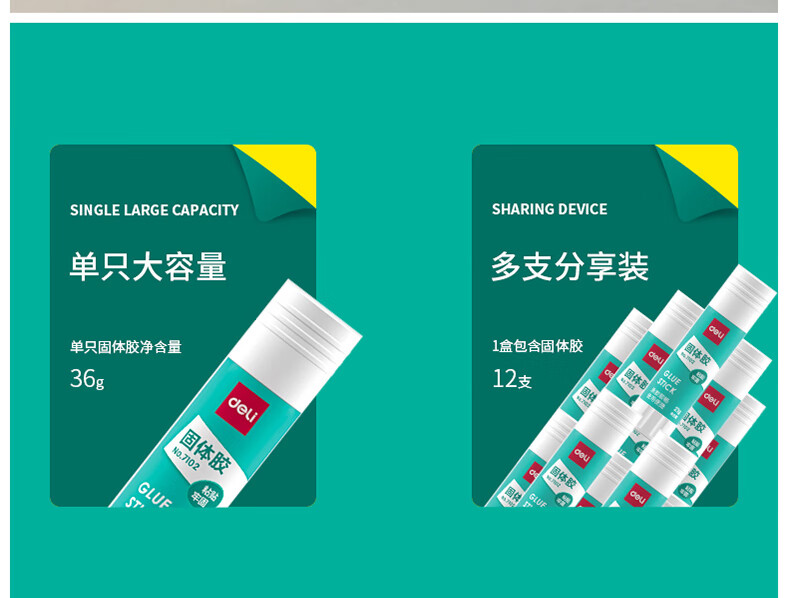 得力(deli)36g高粘度PVA固体胶水/胶棒 快干耐用便携 学习生活手工DIY 12支/盒 办公用品 财务用品7103
