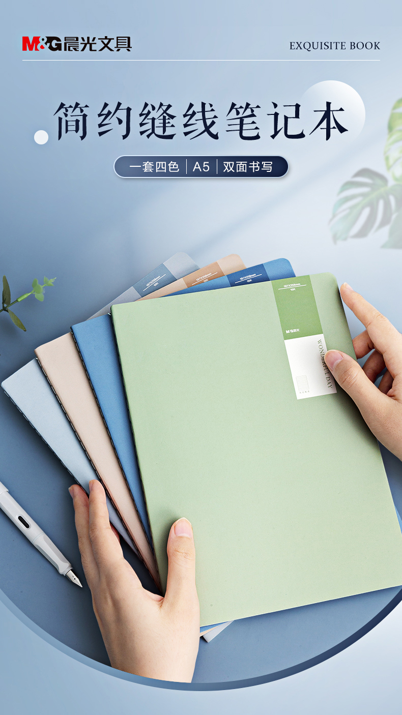 晨光(M&G)文具a5笔记本本子 40张错题本高颜值缝线本记事本 初中学生英语日记本 学习用品 淡染4本装 FA5487