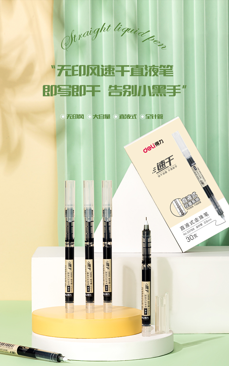 商品名称:得力(deli)速干直液笔签字笔 0.5mm全针管学生中性笔 商务办公水笔走珠笔会议笔 黑色 30支/盒33788