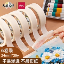 得力(deli)美纹纸胶带/装修遮蔽带/无痕纸/贴膜 24mm*20y*145um(18.3m/卷) 6卷袋装 办公用品 30670