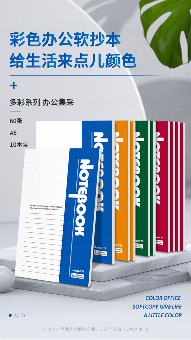 广博(GuangBo)A5办公记事本笔记本子日记本软抄本 60张10本装颜色随机GBR0791